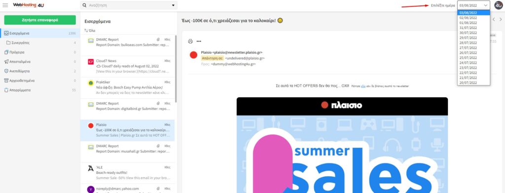 Να δείτε τα διαθέσιμα emails αποθηκευμένα στο backup μας έως 15 μέρες πίσω.